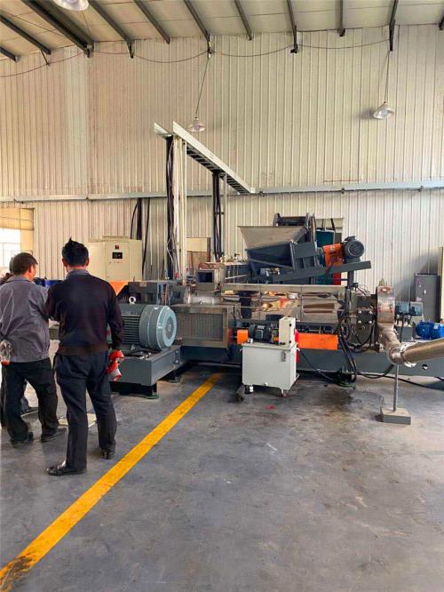 無異常聲音為合格。轉(zhuǎn)動(dòng)方向從機(jī)頭看,單雙螺桿轉(zhuǎn)向均為順時(shí)針方向,螺桿旋轉(zhuǎn)不少于三圈。8、清理密煉室,單雙螺桿,管道系統(tǒng)及料斗,低煙無鹵造粒機(jī)_低煙無鹵造粒機(jī)視頻確認(rèn)無雜質(zhì)異物后,將物料加滿儲(chǔ)料倉。料斗中物料達(dá)到預(yù)定料位后上料機(jī)將自動(dòng)停止上料。各種計(jì)量加料裝置,應(yīng)按工藝要求進(jìn)行現(xiàn)場(chǎng)標(biāo)定,給出各加料裝置的供料曲線,并商定試車方案。注意:溫度需達(dá)到對(duì)應(yīng)物料的熔融溫度才能清理。9、檢查錐雙喂料裝置:(1)向擺線針輪減速器加適量的鈣基潤(rùn)滑油,以后定期(1-2個(gè)月)添加一次。(2)檢查確認(rèn)料斗內(nèi)清潔無臟物。(3)低速運(yùn)轉(zhuǎn)(相反朝內(nèi)為正確轉(zhuǎn)向)輕快,無聲音為合格。10、對(duì)有真空排氣要求的作業(yè),應(yīng)在冷凝罐內(nèi)加好潔凈自來水至規(guī)定水位,關(guān)閉真空管道及冷凝罐各閥門,