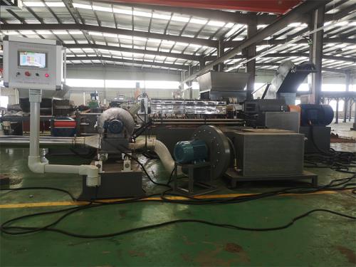 低煙無鹵造粒機設(shè)備特點:這套設(shè)備主機是環(huán)保型;主機設(shè)備不需要接外循環(huán)水系統(tǒng);自帶循環(huán)冷卻統(tǒng)是我公司發(fā)明專利產(chǎn)品(發(fā)明專利號:CN201911312134.6)1.最大好處:主機0水排放;無水污染;環(huán)保好過2.雙螺桿齒輪箱冷卻采用:采用環(huán)保冷卻系統(tǒng)(環(huán)保型:發(fā)明專利號:CN201911312134.6)不需要接外循環(huán)水冷卻,不用徘外水;采用閉環(huán)循環(huán)系統(tǒng),不用擔心長時間使用水冷卻會產(chǎn)生水垢把冷卻器堵住,導致齒輪箱損壞3.雙螺桿主機水箱冷卻系統(tǒng)采用:采用環(huán)保冷卻系統(tǒng)(環(huán)保型:公司發(fā)明專利號:CN201911312134.6)不需要接外循環(huán)水冷卻,不用徘外水;低煙無鹵造粒機采用閉環(huán)循環(huán)系統(tǒng)4.單螺桿主機水箱冷卻系統(tǒng)采用:采用環(huán)保冷卻系統(tǒng)(環(huán)保型:公司發(fā)明專利號:CN201911312134.6)不需要接外循環(huán)水冷卻,不用徘外水;采用閉環(huán)循環(huán)系統(tǒng)5. 節(jié)能:普通筒體筒體冷卻;例如:第5區(qū)溫度超高;這是電子閥導通;第5區(qū)冷卻回水就會影響第六區(qū)和第四區(qū)的溫度下降;就會導致第四六區(qū)加溫;這種情況會一直循環(huán)出現(xiàn);導致電費浪費;我們現(xiàn)在采用環(huán)保型就徹底解決這個問題;我們設(shè)備比同類設(shè)備節(jié)能:10-15%電費6.減少成本:水池尺寸:3米*3米*2.5米冷卻水池;60立方冷卻水塔及4KW高壓水泵2臺及管道,6天水管施工,大概能節(jié)約成本:12萬左右