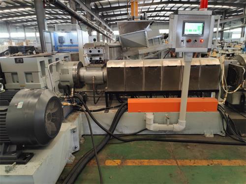 2. **平行雙螺桿造粒機組**:靈活性高,可通過調(diào)整螺桿組合適應(yīng)不同配方,適合中小批量多品種生產(chǎn)。